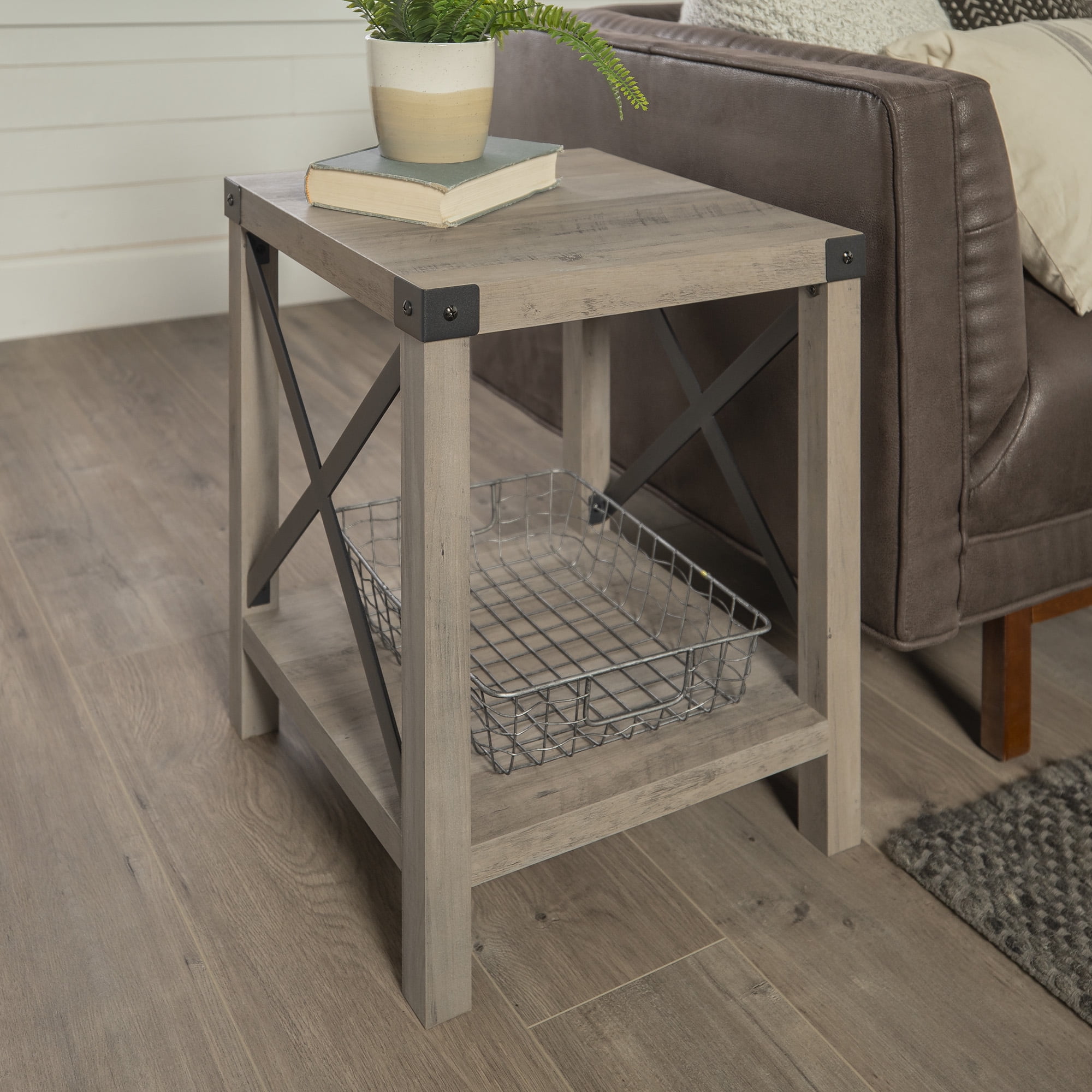 eHomeProducts Weathered Grey Oak Finish Metal X-Design ... from images-na.ssl-images-amazon.com Cedar grove wooden end table dog crate (on amazon). This end table is built of durable engineered wood and comes in your choice of available finish color. Our solid wood end tables are handcrafted in vermont and guaranteed to last a lifetime. Check out our grey wood table selection for the very best in unique or custom, handmade pieces from our furniture shops. See more ideas about table, end tables, accent table. Made of solid wood and has a sturdy construction. Pair antique wood end table inlaid mother of pearl, camel bone and ebony wood. It's crafted from solid reclaimed teak wood, and strikes a circular silhouette in a.